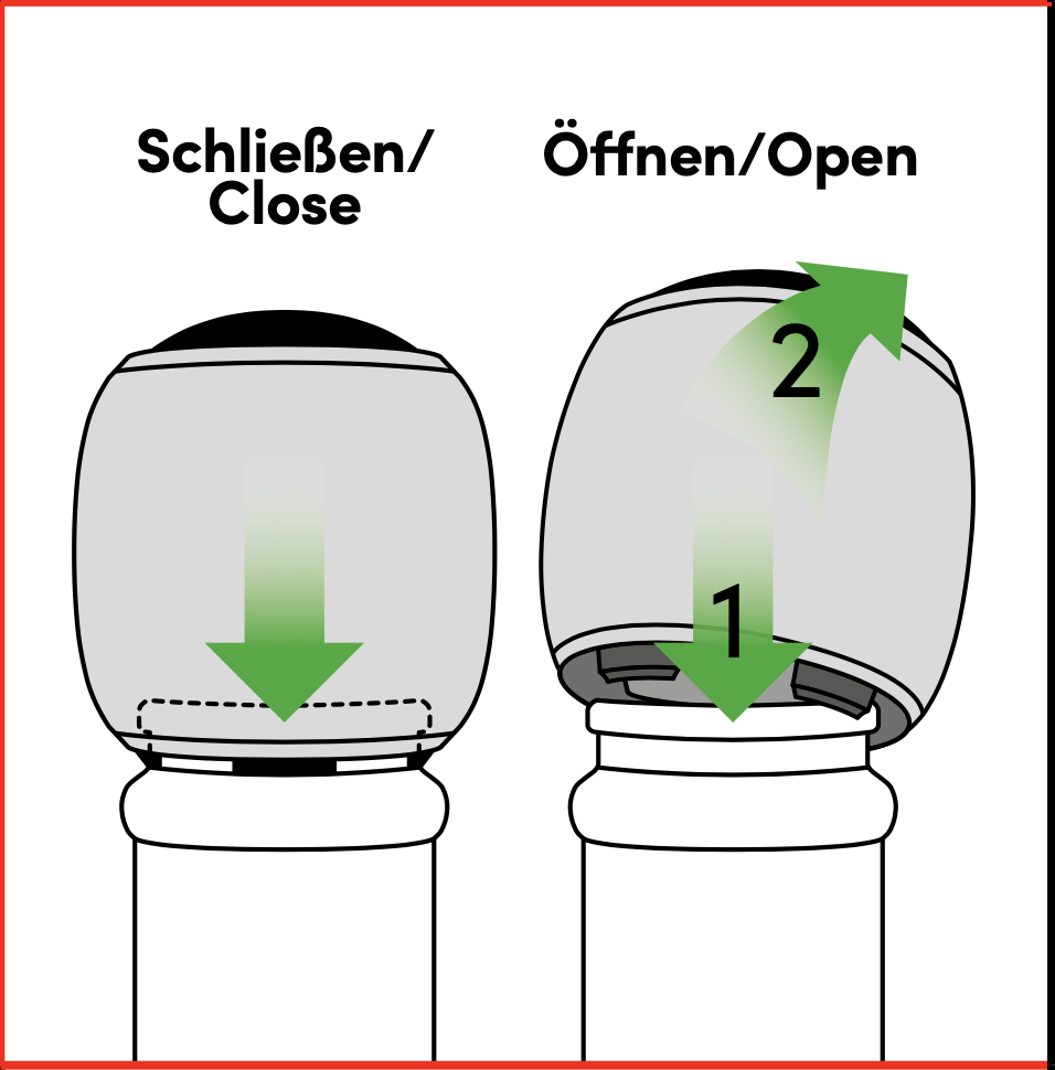 Zum Öffnen horizontal herunterdrücken und zur Seite kippen.