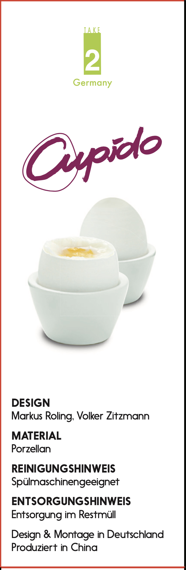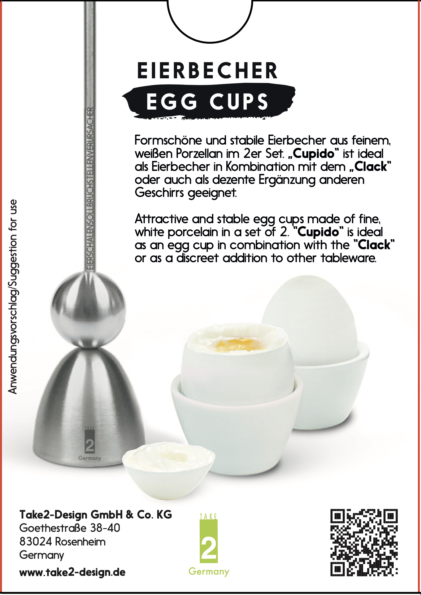 Formschöne und stabile Eierbecher aus feinem, weißen Porzellan im 2er Set. "Cupido" ist ideal als Eierbecher in Kombination mit dem "Clack" oder auch als dezente Ergänzung anderen Geschirrs geeignet.